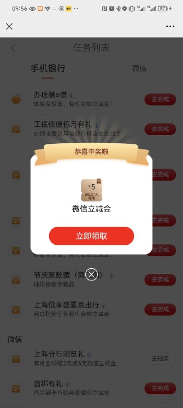 工行APP,任务中心,上海分行浏览礼