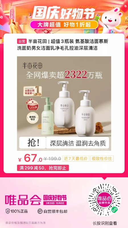 半亩花田 超值3瓶装 氨基酸洁面慕斯洗面奶,24 运费
