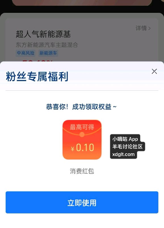 zfb搜 东方基金财富号 粉丝中心 加自选领消费红包
