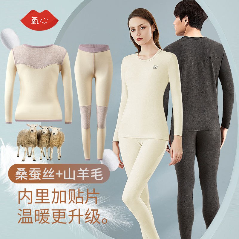 kissy氧心冬季保暖内衣男女套装羊绒蚕丝打底