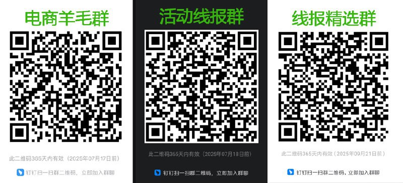 103050000116 进钉钉群,或用钉钉扫描下面二维码,不用翻墙看实时线报!支持搜索指定关键词内容!活动链接可以直接打开! 🧨 常用飞机的朋友关注:实时线报频道 和 实时折扣频道 🧨