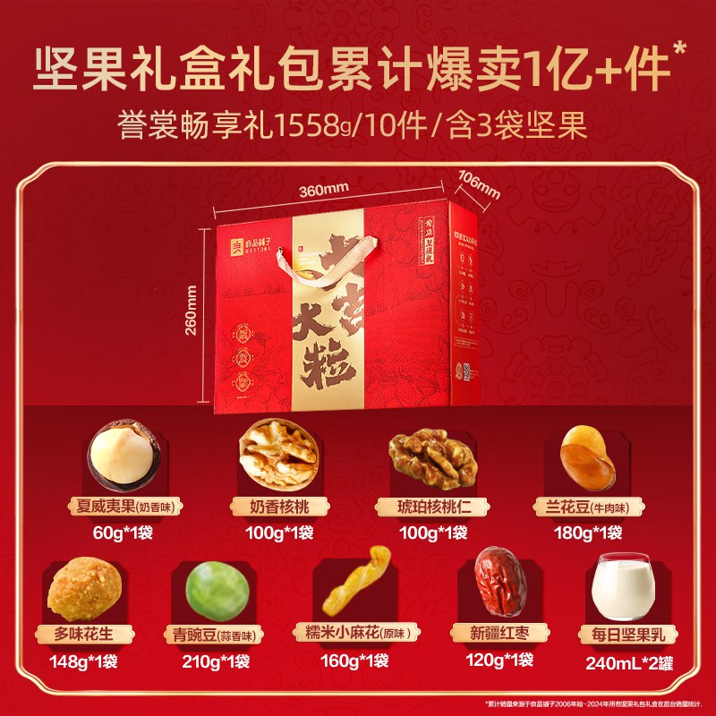 良品铺子坚果礼盒10件/1558g誉裳畅享礼