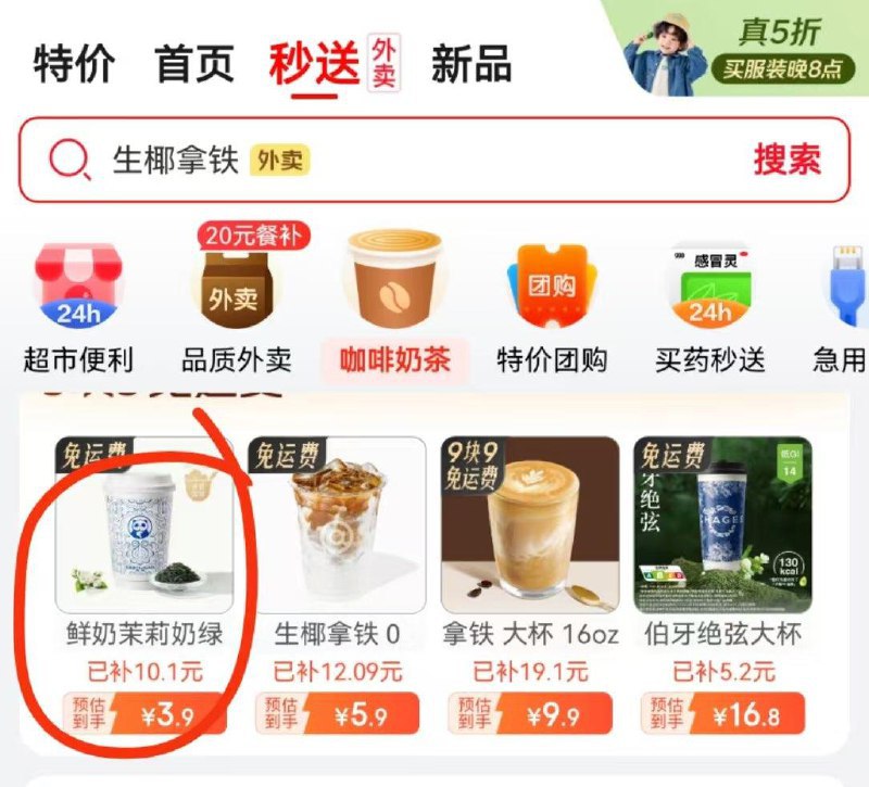 Jd秒送搜茶百道 有3.9亓 1打包费