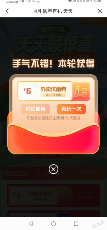 建行生活,外卖券20-5