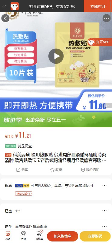 🚦 科美丽康 热敷贴10片/袋,部分用户弹出20券,买2件2.42,如有健康5券,0 健康券包内含