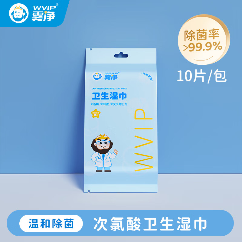 WVIP 雾净 次氯酸消毒湿巾10抽*1包 1元